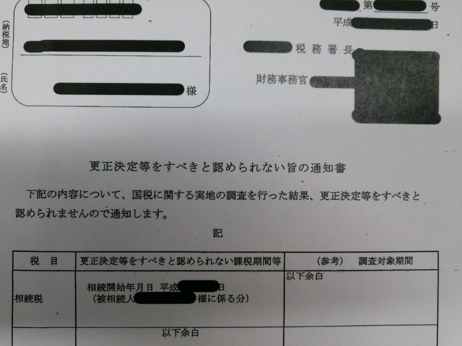 写真は相続税の税務調査の結果、何の問題もなかったとのお墨付きです(笑)。